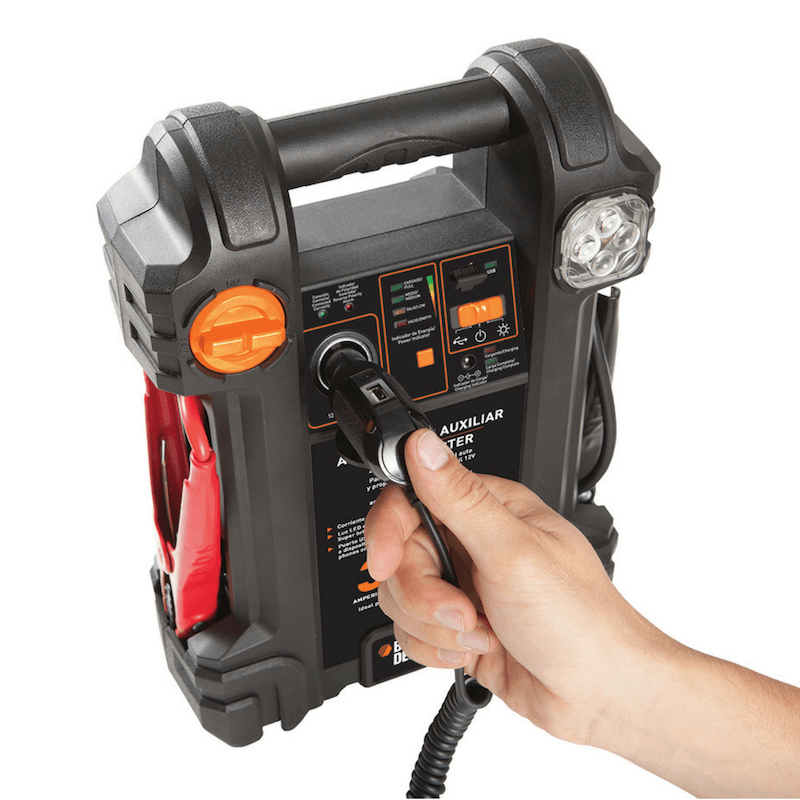 El Arrancador Black+Decker JS350S es una solución portátil y potente para auxiliar vehículos sin necesidad de otro auto. Equipado con cables y pinzas de uso rudo, garantiza máximo rendimiento y durabilidad. Además, ofrece energía portátil con una fuente de alimentación de 12V DC y puerto USB, permitiendo la carga de dispositivos electrónicos. Su diseño incluye una lámpara LED de emergencia ultrabrillante, ideal para proporcionar visibilidad en condiciones de poca luz.