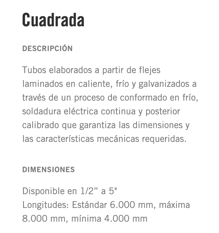 • Aplicaciones: Marcos, portones, muebles metálicos, estructuras de obra