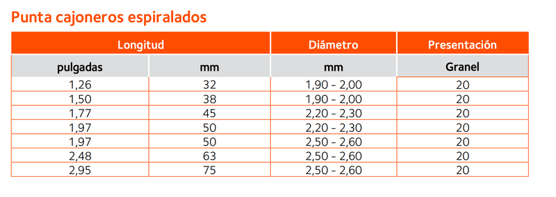 Clavos espiralados de Acindar, fabricados para ofrecer máxima fijación en madera gracias a su diseño helicoidal que mejora la sujeción y resistencia al arrancamiento. Disponibles en una amplia gama de largos, son ideales para estructuras de madera, cercos, embalajes, tarimas y construcciones donde se requiera durabilidad y firmeza.