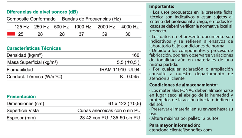 - Propiedades: Máxima absorción acústica, material duradero y fácil de instalar