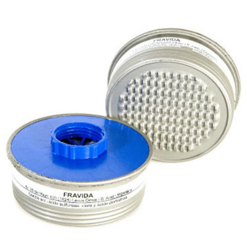 El filtro para mascarilla Fravida está diseñado para proporcionar protección contra gases ácidos, vapores orgánicos, cloro, ácido clorhídrico, anhídrido sulfuroso, entre otros. Este filtro está equipado con un sistema de sujeción a rosca (universal), lo que permite su fácil integración con diversos modelos de mascarillas.