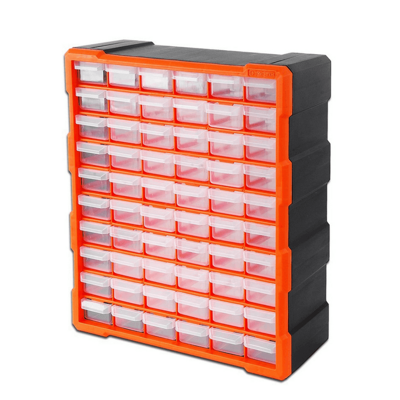 El gavetero organizador Tactix modelo 320636 está diseñado para almacenar y clasificar piezas pequeñas con total practicidad. Fabricado en plástico reforzado, ofrece una estructura resistente y 39 cajones para optimizar el orden en talleres, garajes o espacios de trabajo.
