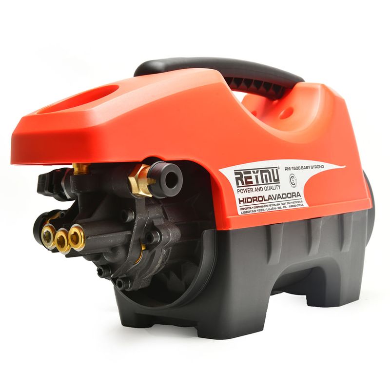 Hidrolavadora Reymu RM1500 Baby Strong, diseñada con estructura compacta y robusta, ideal para tareas de limpieza exigentes en el hogar, el jardín o superficies industriales. Equipada con un motor de 2100W y una presión de 110 Bar para un rendimiento eficiente y poderoso.