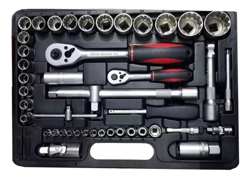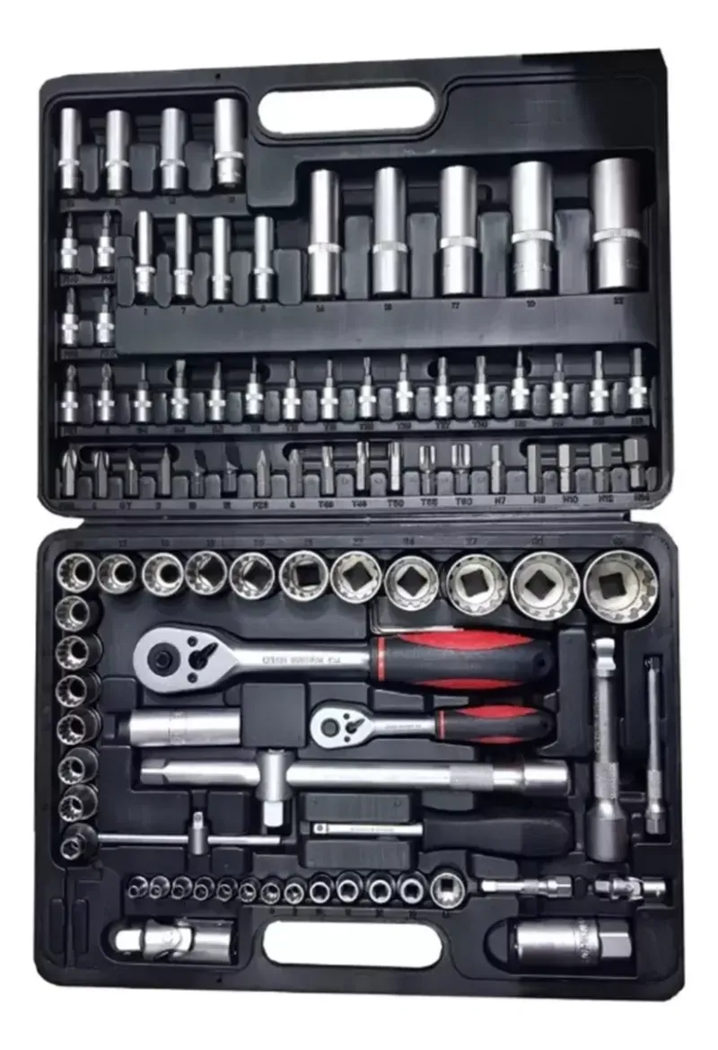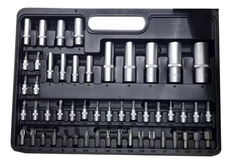 Incluye bocallaves métricas y en pulgadas, criquets, puntas, adaptadores y accesorios. Perfecto para tareas de mantenimiento, reparación y ajustes de precisión.