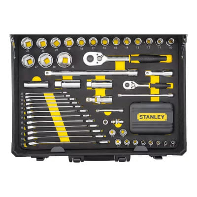 El Juego de Bocallaves Stanley de 176 piezas es una solución profesional y completa para tareas de mantenimiento automotriz, trabajos industriales y mecánicos. Incluye una amplia variedad de bocallaves, criquets, extensiones, adaptadores y puntas de destornillador, todo organizado en un estuche rígido. Fabricado en acero cromo vanadio con acabado cromado, garantiza resistencia, durabilidad y protección contra la corrosión. Los criquets cuentan con un mecanismo reversible de 72 dientes, ideal para ajustes precisos en espacios reducidos.