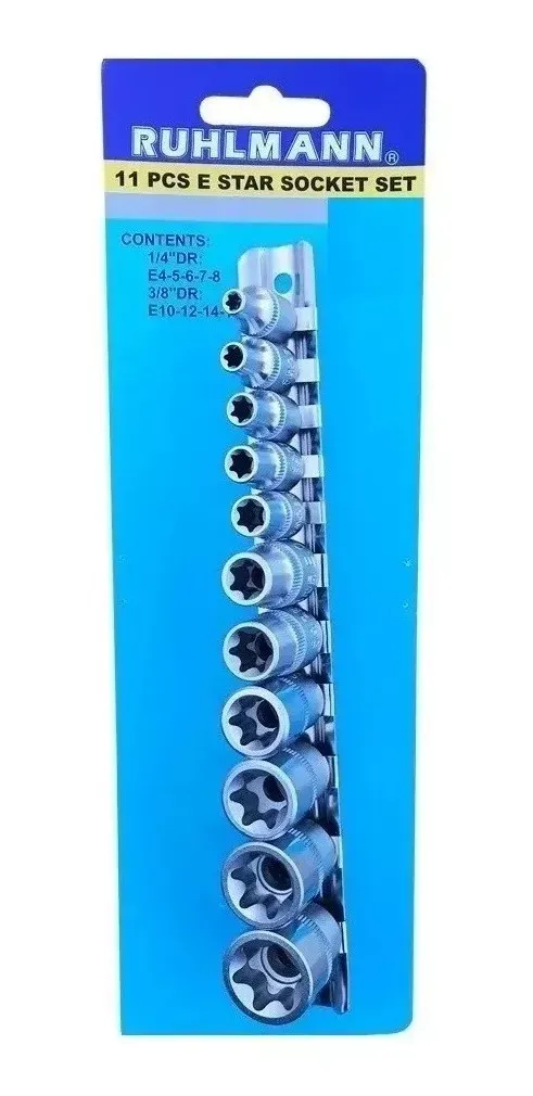 Juego de Bocallaves Hembra Torx Encastre 1/4"-3/8" 11 Piezas Ruhlmann. Descripción El