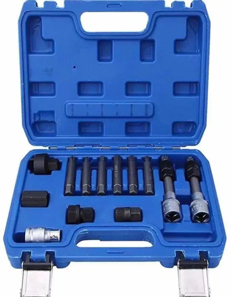 Incluye bocallaves, puntas y adaptadores especiales para alternadores. Ideal para talleres automotrices, mantenimiento de vehículos y trabajos mecánicos de precisión.