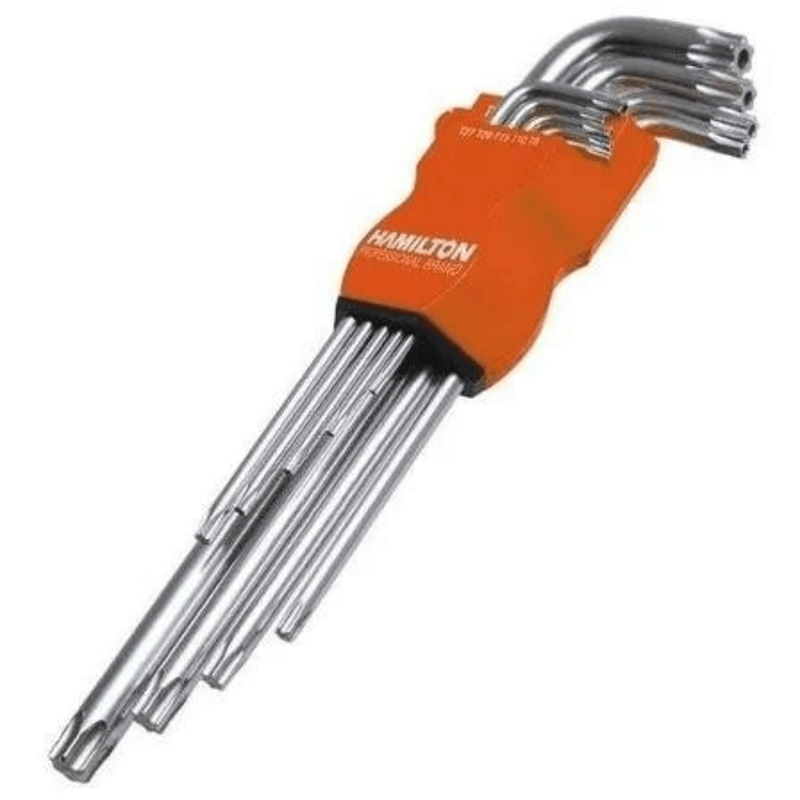 Juego de llaves tipo Torx largas con punta Tamper, ideal para trabajos mecánicos y electrónicos que requieren precisión y resistencia. Fabricadas en acero cromo-vanadio con tratamiento anti-corrosión, garantizan durabilidad y excelente desempeño.