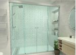 Mampara corrediza Blindex® con diseño en aluminio, fabricada a medida con vidrio templado de 8 mm y kit de herrajes de alta calidad, ofreciendo seguridad, durabilidad y una estética moderna para tu baño.