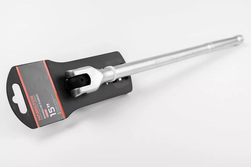 El Mango de Fuerza Hamilton Encastre 1/2" 15" está fabricado en acero cromo-vanadio de alta resistencia, garantizando durabilidad y rendimiento en tareas de alto torque. Cumple con las normas DIN3120/3122 y tiene un diseño ergonómico y robusto para facilitar su uso durante trabajos exigentes. Su encastre de 1/2" y su longitud de 15" permiten una mayor versatilidad y control en diversas aplicaciones.