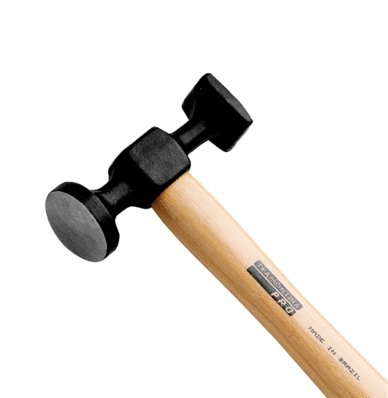 Martillo con pena vertical de la línea Tramontina Pro, diseñado para trabajos de chapistería y reparaciones que requieren precisión. Con un largo de 280 mm y peso de 300 gramos, ofrece buen equilibrio y maniobrabilidad.