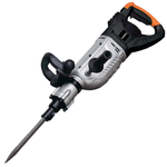 Además, el martillo está provisto de un indicador de carbón, seguridad contra trabas con embrague y un sistema de absorción de vibraciones en la empuñadura. Viene en una caja de plástico con ruedas para facilitar su transporte.