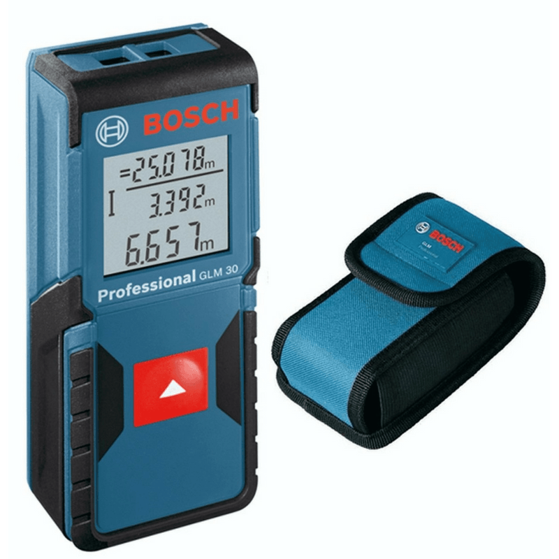 El Medidor de Distancia Láser Bosch GLM30 es una herramienta compacta y precisa, ideal para facilitar mediciones rápidas y presupuestos, con la función de suma automática para mayor eficiencia en el trabajo.
