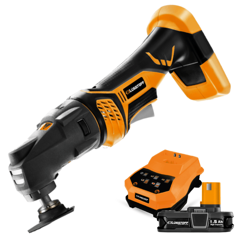 Además, posee un adaptador universal guardado en la herramienta compatible con los accesorios más comunes de multiherramientas, y un comportamiento magnético que mantiene puntas y tornillos al alcance de la mano. Es versátil para cortes en paneles de yeso, metal, madera, plástico y materiales compuestos, y también sirve para lijar detalles finos. La empuñadura tiene revestimiento de caucho mejorado para un óptimo agarre y comodidad. No incluye cargador ni baterías.