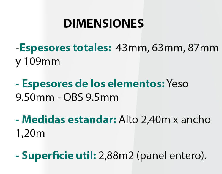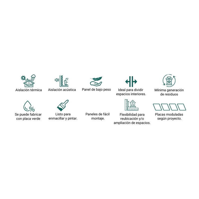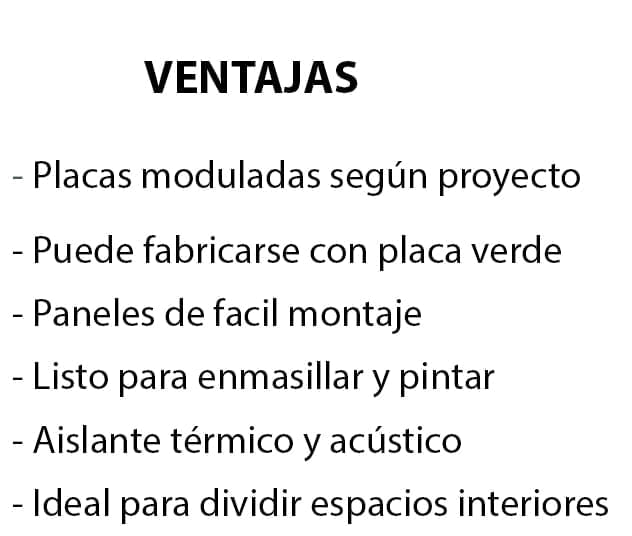 - Material: Láminas de yeso con núcleo de EPS (poliestireno expandido) de alta densidad