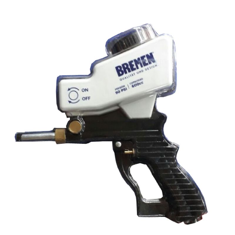 La Pistola Arenadora Bremen modelo 4648 está diseñada para trabajos de limpieza y preparación de superficies, eliminando óxido, pintura y suciedad de manera eficiente. Su sistema de arenado por gravedad y su selector de fuerza de dos niveles (Bajo y Alto) permiten un control preciso del flujo abrasivo, adaptándose a las necesidades de cada tarea. Construida con un cuerpo metálico resistente, esta herramienta es ideal para uso profesional e industrial.