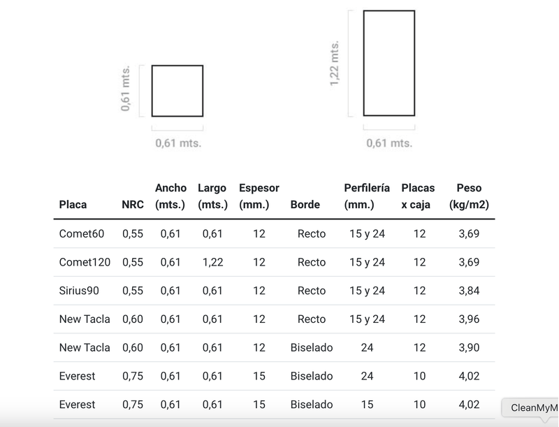 • Material: Placa acústica especialmente diseñada para mejorar la absorción de sonido y reducir el ruido ambiental.