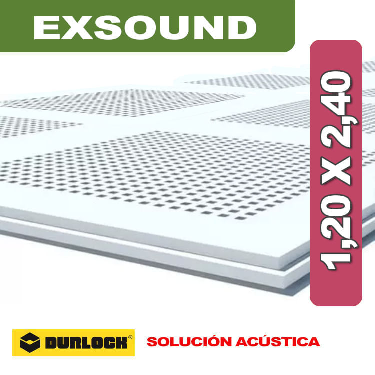 Las Placas Exsound de Durlock están diseñadas para ofrecer un excelente rendimiento acústico combinado con un diseño estético. Estas placas perforadas son ideales para aplicaciones en auditorios, salas de cine, oficinas, y otros espacios que requieren control acústico de alta calidad.