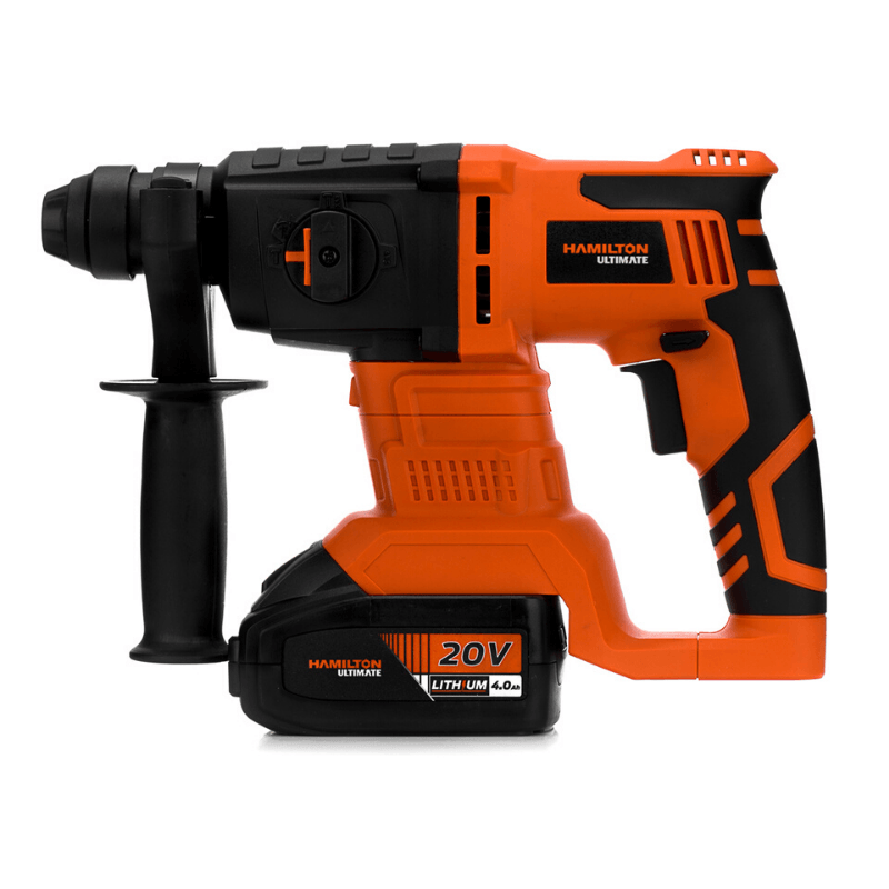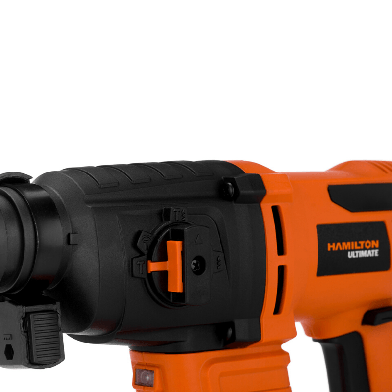 El rotomartillo percutor inalámbrico Hamilton Ultimate de 20V ofrece versatilidad y potencia para trabajos de perforación y demolición. Cuenta con cuatro modos de uso: Taladro, Taladro percutor, Martillo y Cincelador. Incorpora un motor brushed con sistema de enfriamiento (cooler) y una regla graduada para mayor precisión en tareas exigentes.