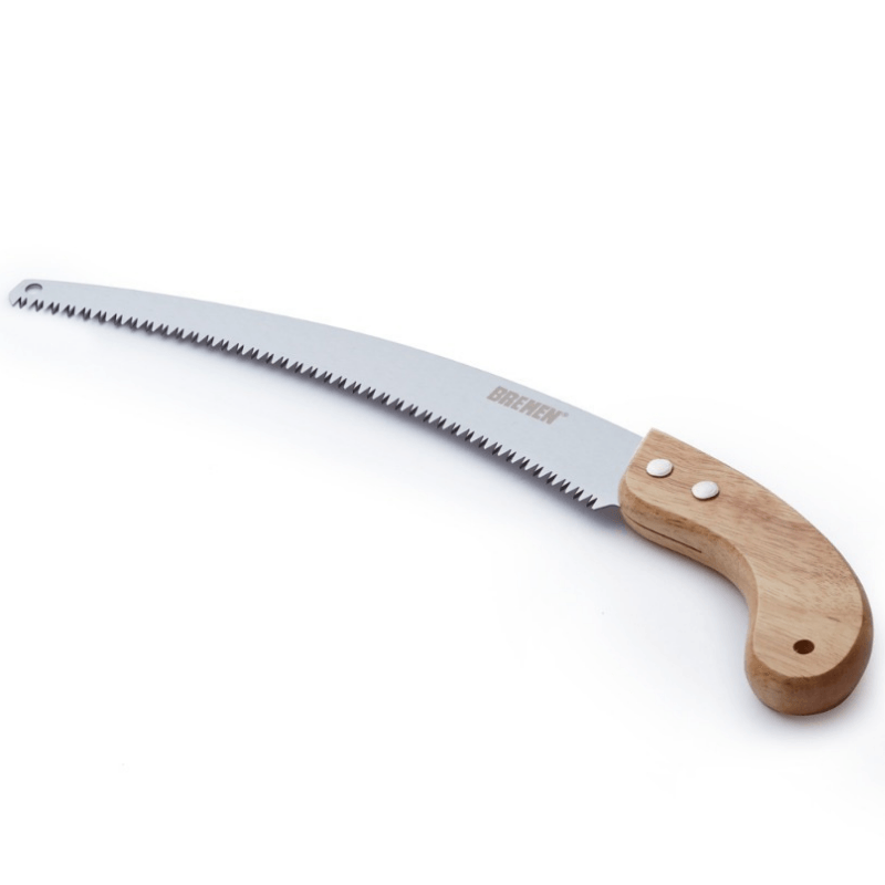El Serrucho de Poda Bremen 12" es una herramienta robusta y eficiente, diseñada para facilitar la poda de ramas y arbustos. Su hoja de acero carbono endurecido garantiza un corte limpio y preciso, mientras que su diseño con doble filo y dientes con triple biselado aumenta la eficiencia del corte. El acero cromado no solo proporciona mayor fuerza y durabilidad, sino que también lo hace resistente al óxido, asegurando una larga vida útil. El cabo de madera proporciona un agarre cómodo y seguro, ideal para trabajos prolongados en el jardín.