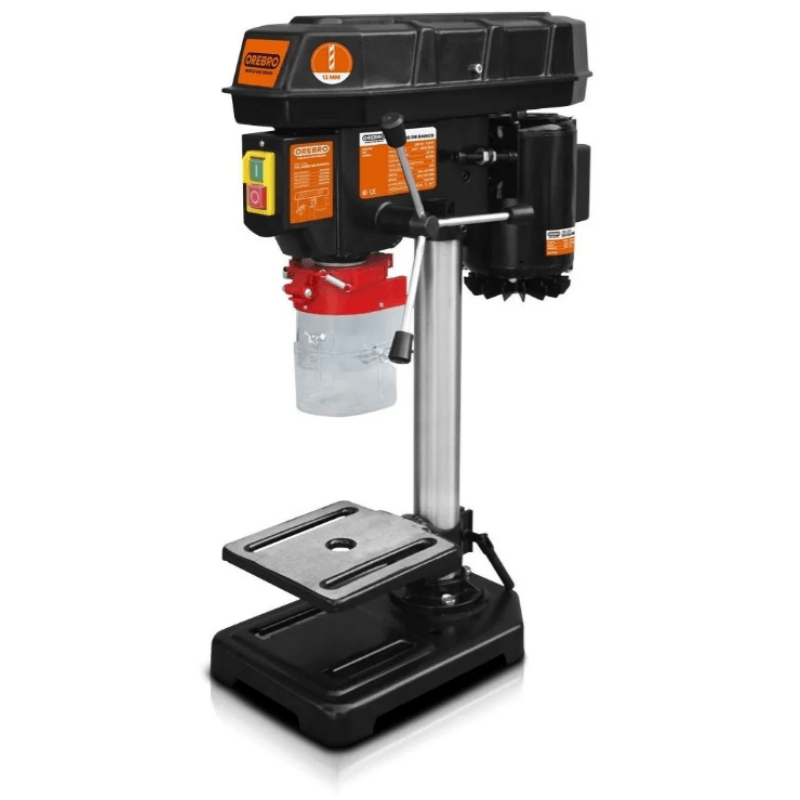 El taladro de banco Orebro 13 mm está equipado con un potente motor de inducción de 1/2 HP, ideal para uso profesional. Su estructura robusta, con base y mesa de fundición, garantiza estabilidad, precisión y durabilidad en cada trabajo.