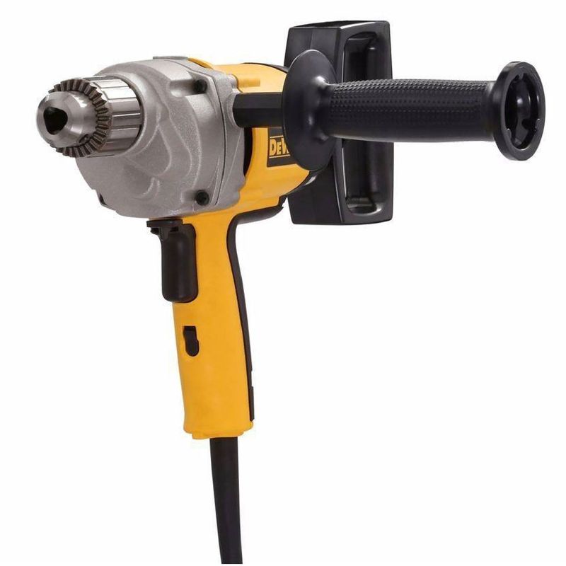 El taladro de fuerza DW130V de Dewalt es ideal para diversas aplicaciones de mezcla, como cemento y pintura, así como para perforaciones en chasis y carrocerías. También es perfecto para aplicaciones de perforación en madera y metal en general. Su interruptor de pivote con reversa (AC/DC) es útil para sacar brocas atoradas o para la mezcla de cemento. Además, su reducción de velocidad de engranaje triple aumenta el torque y reduce el desgaste de los engranajes. La velocidad baja de 550 rev./min proporciona un mayor torque para la perforación de agujeros grandes en madera y metal.