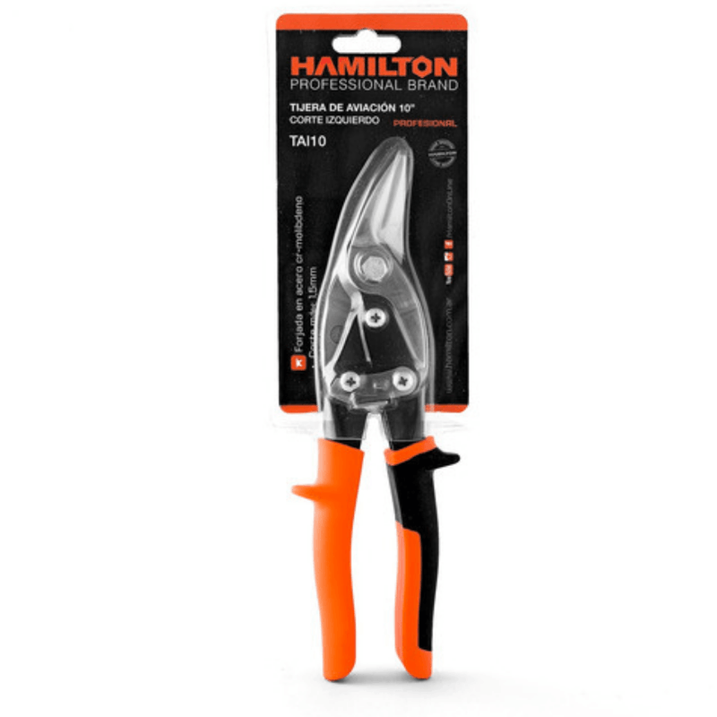 La Tijera Para Cortar Chapa Aviador Izquierdo 10" Hamilton es una herramienta especializada para realizar cortes curvos hacia la izquierda en chapa metálica, facilitando trabajos de precisión en metal.