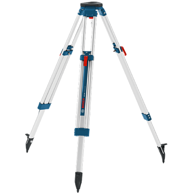 El trípode de aluminio para trabajo pesado Bosch BT160 está fabricado en aluminio versátil, diseñado para ofrecer alta estabilidad y fácil transporte.